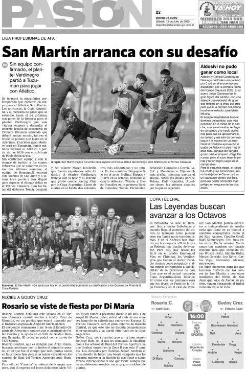 Diario de Cuyo | HOME | Edición impresa Tapa Pasión 12 de Julio de 2025 Por Redacción Diario de Cuyo 12/07/2025 · 4:00 Escuchar la noticia Escuchar la noticia Your browser doesn’t support HTML5 audio Ver los comentarios ›
