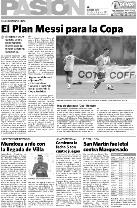 Diario de Cuyo | HOME | Edición impresa Tapa Pasión 12 de Junio de 2024 Por Redacción Diario de Cuyo 12/06/2024 · 4:00 Escuchar la noticia Escuchar la noticia Your browser doesn’t support HTML5 audio Ver los comentarios ›