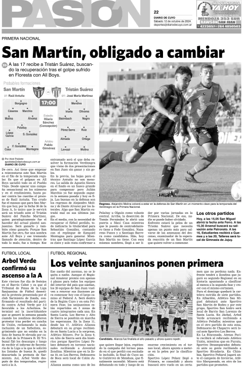 Diario de Cuyo | HOME | Edición impresa Tapa Pasión 12 de Octubre de 2024 Por Redacción Diario de Cuyo 12/10/2024 · 4:00 Escuchar la noticia Escuchar la noticia Your browser doesn’t support HTML5 audio Ver los comentarios ›