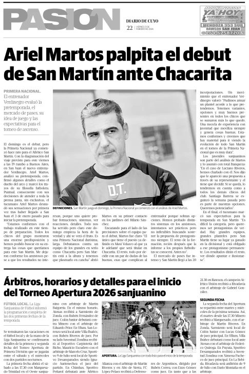 Diario de Cuyo | HOME | Edición impresa Tapa Pasion 13 de Febrero 2026 Por Redacción Diario de Cuyo 13/02/2026 · 4:00 Escuchar la noticia Escuchar la noticia Your browser doesn’t support HTML5 audio Ver los comentarios ›