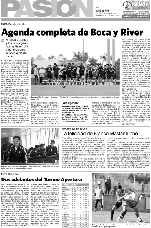 Diario de Cuyo | HOME | Edición impresa Tapa Pasión 13 de Junio de 2025 Por Redacción Diario de Cuyo 13/06/2025 · 4:00 Escuchar la noticia Escuchar la noticia Your browser doesn’t support HTML5 audio Ver los comentarios ›