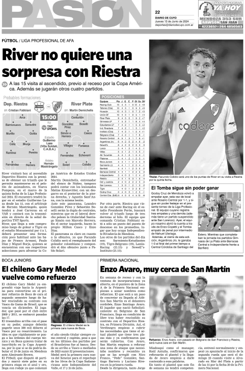 Diario de Cuyo | HOME | Edición impresa Tapa Pasión 13 de Junio del 2024 Por Redacción Diario de Cuyo 13/06/2024 · 4:00 Escuchar la noticia Escuchar la noticia Your browser doesn’t support HTML5 audio Ver los comentarios ›