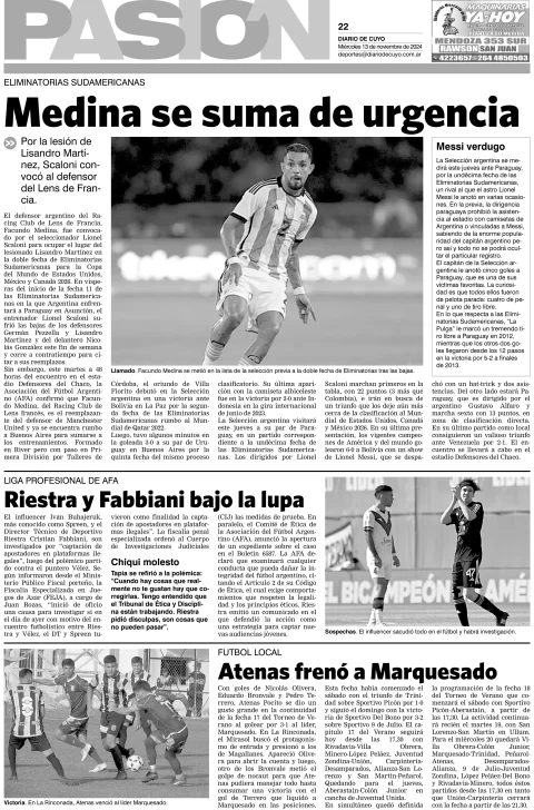 Diario de Cuyo | HOME | Edición impresa Tapa Pasión 13 de Noviembre de 2024 Por Redacción Diario de Cuyo 13/11/2024 · 4:00 Escuchar la noticia Escuchar la noticia Your browser doesn’t support HTML5 audio Ver los comentarios ›