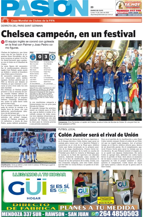 Diario de Cuyo | HOME | Edición impresa Tapa Pasión 14 de Julio del 2025 Por Redacción Diario de Cuyo 14/07/2025 · 4:00 Escuchar la noticia Escuchar la noticia Your browser doesn’t support HTML5 audio Ver los comentarios ›