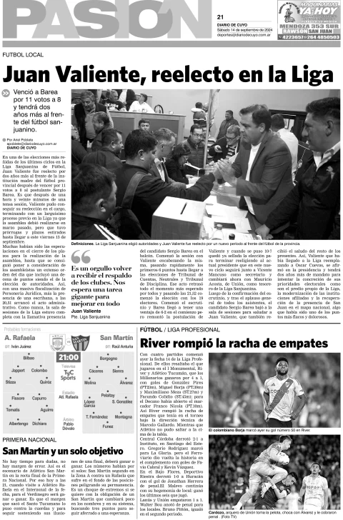 Diario de Cuyo | HOME | Edición impresa Tapa Pasión 14 de Septiembre del 2024 Por Redacción Diario de Cuyo 14/09/2024 · 4:00 Escuchar la noticia Escuchar la noticia Your browser doesn’t support HTML5 audio Ver los comentarios ›