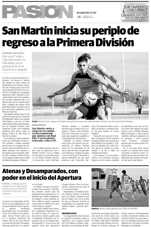 Diario de Cuyo | HOME | Edición impresa Tapa Pasion 15 de Febrero 2026 Por Redacción Diario de Cuyo 15/02/2026 · 1:00 Escuchar la noticia Escuchar la noticia Your browser doesn’t support HTML5 audio Ver los comentarios ›