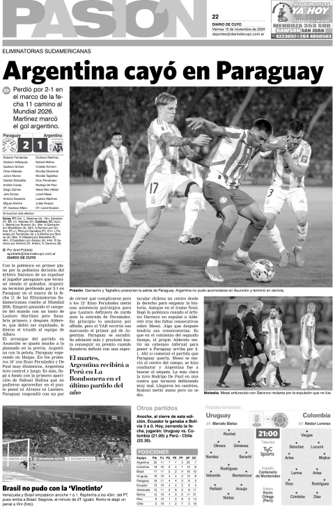 Diario de Cuyo | HOME | Edición impresa Tapa Pasión 15 de Noviembre de 2024 Por Redacción Diario de Cuyo 15/11/2024 · 4:00 Escuchar la noticia Escuchar la noticia Your browser doesn’t support HTML5 audio Ver los comentarios ›