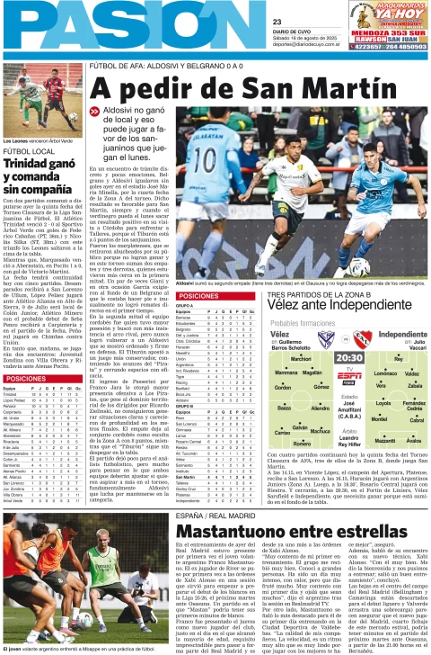 Diario de Cuyo | HOME | Edición impresa Tapa Pasión 16 de Agosto de 2025 Por Redacción Diario de Cuyo 16/08/2025 · 4:00 Escuchar la noticia Escuchar la noticia Your browser doesn’t support HTML5 audio Ver los comentarios ›