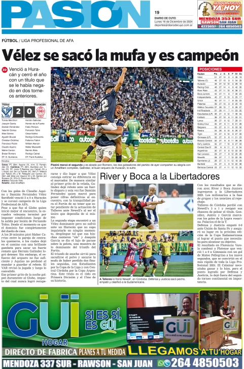 Diario de Cuyo | HOME | Edición impresa Tapa Pasión 16 de Diciembre de 2024 Por Redacción Diario de Cuyo 16/12/2024 · 4:04 Escuchar la noticia Escuchar la noticia Your browser doesn’t support HTML5 audio Ver los comentarios ›