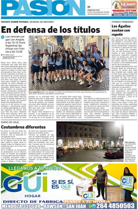 Diario de Cuyo | HOME | Edición impresa Tapa Pasión 16 de Septiembre del 2024 Por Redacción Diario de Cuyo 16/09/2024 · 4:00 Escuchar la noticia Escuchar la noticia Your browser doesn’t support HTML5 audio Ver los comentarios ›
