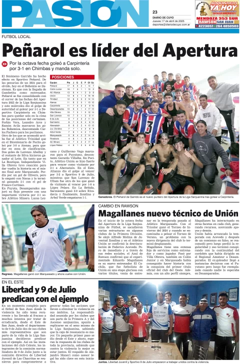 Diario de Cuyo | HOME | Edición impresa Tapa Pasión 17 de Abril de 2025 Por Redacción Diario de Cuyo 17/04/2025 · 4:00 Escuchar la noticia Escuchar la noticia Your browser doesn’t support HTML5 audio Ver los comentarios ›