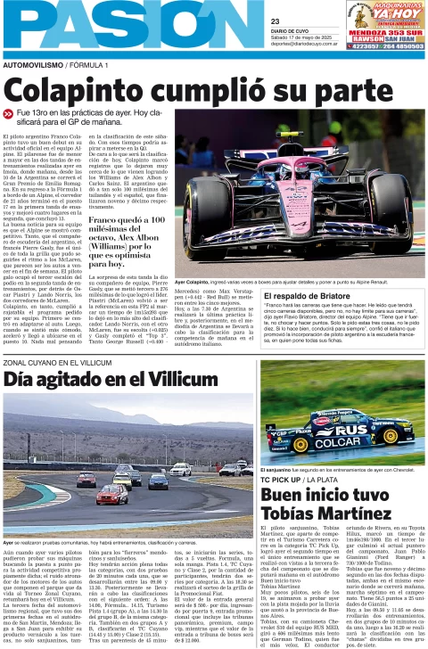 Diario de Cuyo | HOME | Edición impresa Tapa Pasión 17 de Mayo de 2025 Por Redacción Diario de Cuyo 17/05/2025 · 4:00 Escuchar la noticia Escuchar la noticia Your browser doesn’t support HTML5 audio Ver los comentarios ›