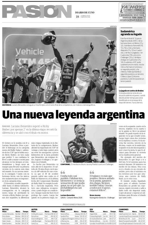 Diario de Cuyo | HOME | Edición impresa Tapa Pasión 18 de Enero 2026 Por Redacción Diario de Cuyo 18/01/2026 · 4:00 Escuchar la noticia Escuchar la noticia Your browser doesn’t support HTML5 audio Ver los comentarios ›