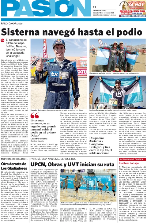 Diario de Cuyo | HOME | Edición impresa Tapa Pasión 18 de Enero de 2025 Por Redacción Diario de Cuyo 18/01/2025 · 4:05 Escuchar la noticia Escuchar la noticia Your browser doesn’t support HTML5 audio Ver los comentarios ›