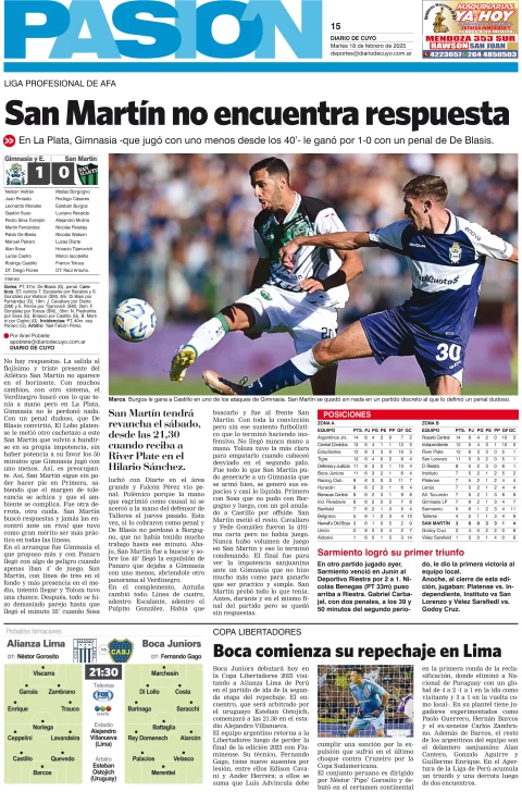 Diario de Cuyo | HOME | Edición impresa Tapa Pasión 18 de Febrero del 2025 Por Redacción Diario de Cuyo 18/02/2025 · 4:00 Escuchar la noticia Escuchar la noticia Your browser doesn’t support HTML5 audio Ver los comentarios ›