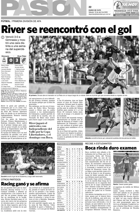 Diario de Cuyo | HOME | Edición impresa Tapa Pasión 19 de Abril de 2025 Por Redacción Diario de Cuyo 19/04/2025 · 4:00 Escuchar la noticia Escuchar la noticia Your browser doesn’t support HTML5 audio Ver los comentarios ›