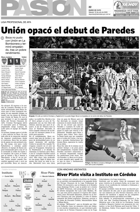 Diario de Cuyo | HOME | Edición impresa Tapa Pasión 19 de Julio del 2025 Por Redacción Diario de Cuyo 19/07/2025 · 4:00 Escuchar la noticia Escuchar la noticia Your browser doesn’t support HTML5 audio Ver los comentarios ›