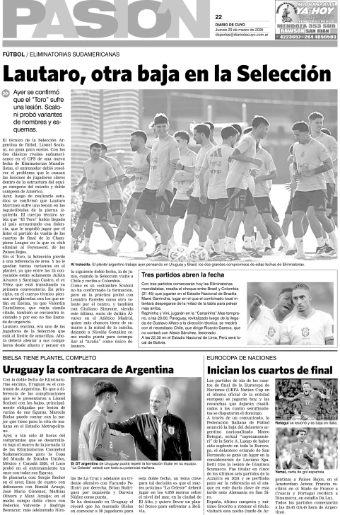Diario de Cuyo | HOME | Edición impresa Tapa Pasión 20 de Marzo de 2025 Por Redacción Diario de Cuyo 20/03/2025 · 4:00 Escuchar la noticia Escuchar la noticia Your browser doesn’t support HTML5 audio Ver los comentarios ›