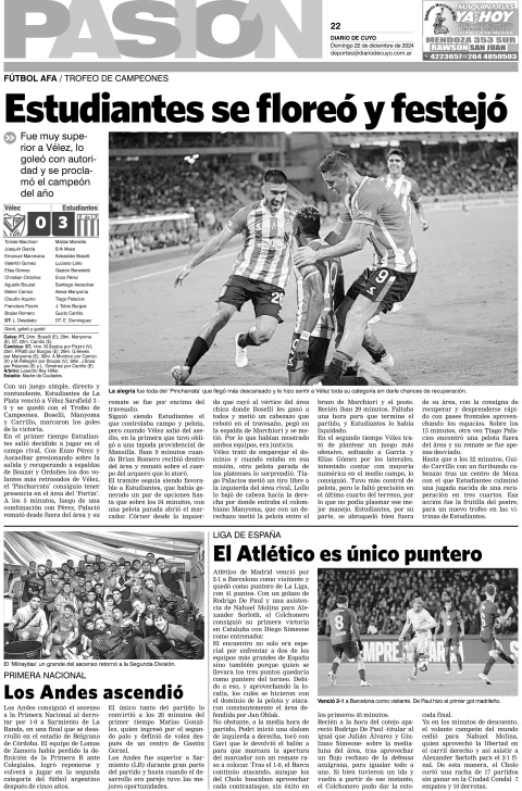 Diario de Cuyo | HOME | Edición impresa Tapa Pasión 22 de Diciembre de 2024 Por Redacción Diario de Cuyo 22/12/2024 · 4:00 Escuchar la noticia Escuchar la noticia Your browser doesn’t support HTML5 audio Ver los comentarios ›