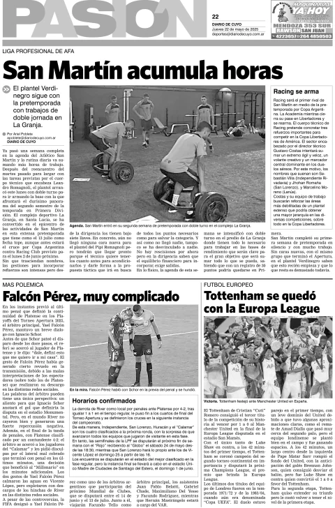 Diario de Cuyo | HOME | Edición impresa Tapa Pasión 22 de Mayo de 2025 Por Redacción Diario de Cuyo 22/05/2025 · 4:00 Escuchar la noticia Escuchar la noticia Your browser doesn’t support HTML5 audio Ver los comentarios ›