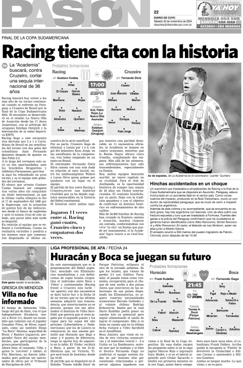 Diario de Cuyo | HOME | Edición impresa Tapa Pasión 23 de Noviembre de 2024 Por Redacción Diario de Cuyo 23/11/2024 · 4:00 Escuchar la noticia Escuchar la noticia Your browser doesn’t support HTML5 audio Ver los comentarios ›