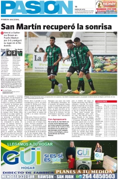 Diario de Cuyo | HOME | Edición impresa Tapa Pasión 23 de Septiembre del 2024 Por Redacción Diario de Cuyo 23/09/2024 · 4:00 Escuchar la noticia Escuchar la noticia Your browser doesn’t support HTML5 audio Ver los comentarios ›