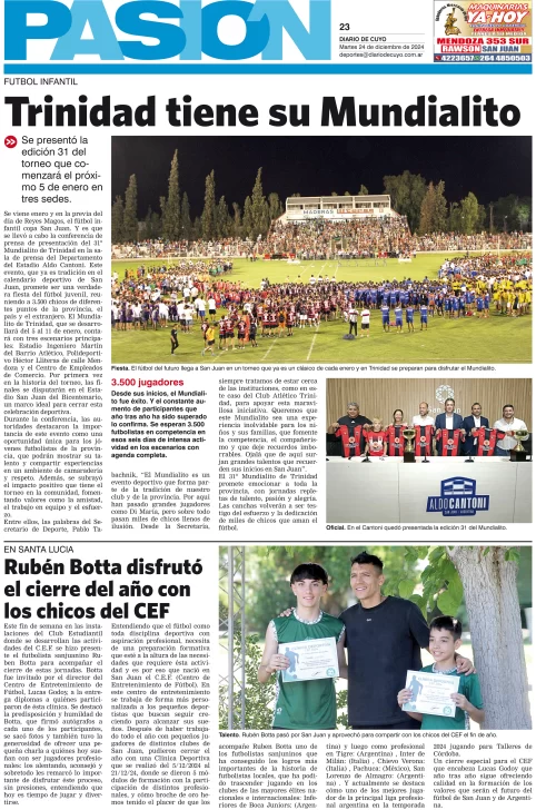 Diario de Cuyo | HOME | Edición impresa Tapa Pasión 24 de Diciembre de 2024 Por Redacción Diario de Cuyo 24/12/2024 · 4:00 Escuchar la noticia Escuchar la noticia Your browser doesn’t support HTML5 audio Ver los comentarios ›