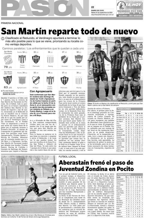 Diario de Cuyo | HOME | Edición impresa Tapa Pasión 24 de Septiembre del 2024 Por Redacción Diario de Cuyo 24/09/2024 · 4:00 Escuchar la noticia Escuchar la noticia Your browser doesn’t support HTML5 audio Ver los comentarios ›