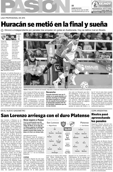 Diario de Cuyo | HOME | Edición impresa Tapa Pasión 25 de Mayo de 2025 Por Redacción Diario de Cuyo 25/05/2025 · 4:00 Escuchar la noticia Escuchar la noticia Your browser doesn’t support HTML5 audio Ver los comentarios ›