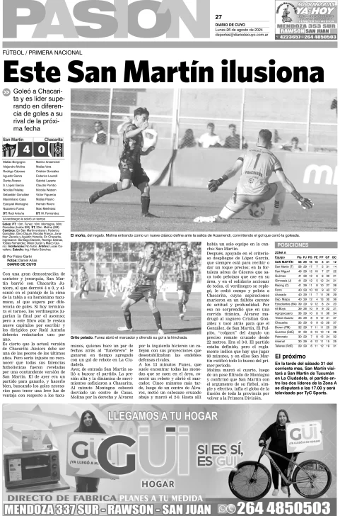 Diario de Cuyo | HOME | Edición impresa Tapa Pasión 26 de Agosto de 2024 Por Redacción Diario de Cuyo 26/08/2024 · 4:00 Escuchar la noticia Escuchar la noticia Your browser doesn’t support HTML5 audio Ver los comentarios ›