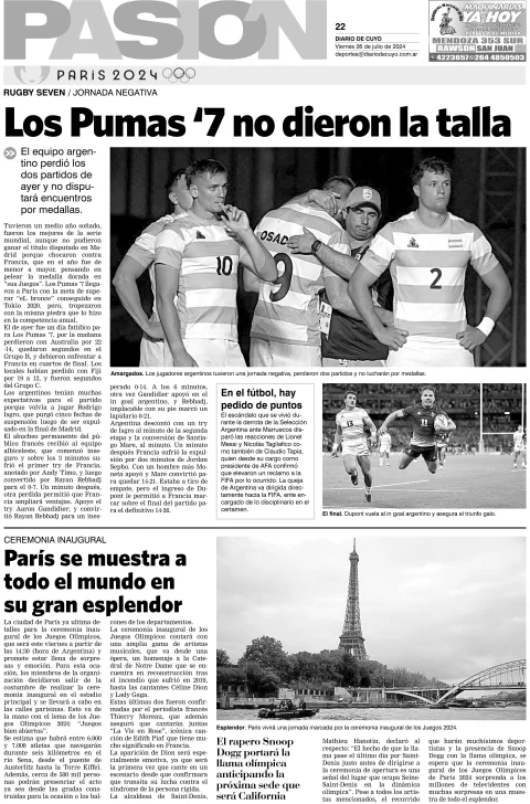 Diario de Cuyo | HOME | Edición impresa Tapa Pasión 26 de Julio del 2024 Por Redacción Diario de Cuyo 26/07/2024 · 4:00 Escuchar la noticia Escuchar la noticia Your browser doesn’t support HTML5 audio Ver los comentarios ›