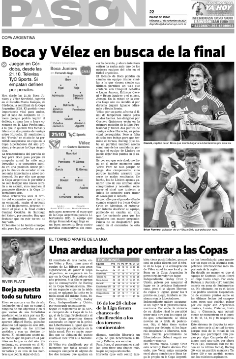 Diario de Cuyo | HOME | Edición impresa Tapa Pasión 27 de Noviembre de 2024 Por Redacción Diario de Cuyo 27/11/2024 · 4:00 Escuchar la noticia Escuchar la noticia Your browser doesn’t support HTML5 audio Ver los comentarios ›