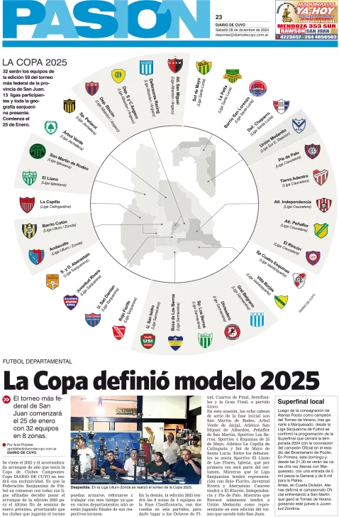 Diario de Cuyo | HOME | Edición impresa Tapa Pasión 28 de Diciembre de 2024 Por Redacción Diario de Cuyo 28/12/2024 · 4:00 Escuchar la noticia Escuchar la noticia Your browser doesn’t support HTML5 audio Ver los comentarios ›