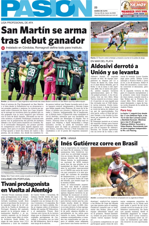 Diario de Cuyo | HOME | Edición impresa Tapa Pasión 28 de Marzo de 2025 Por Redacción Diario de Cuyo 28/03/2025 · 4:00 Escuchar la noticia Escuchar la noticia Your browser doesn’t support HTML5 audio Ver los comentarios ›