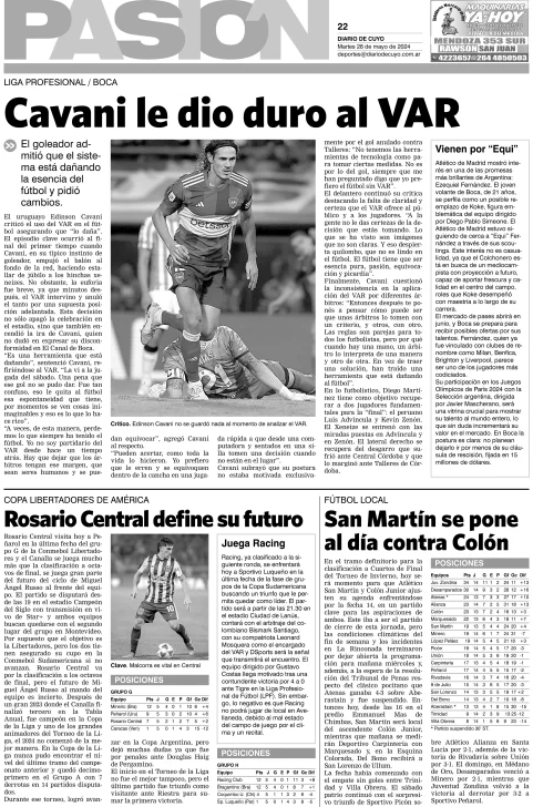 Diario de Cuyo | HOME | Edición impresa Tapa Pasión 28 de Mayo del 2024 Por Redacción Diario de Cuyo 28/05/2024 · 5:00 Escuchar la noticia Escuchar la noticia Your browser doesn’t support HTML5 audio Ver los comentarios ›