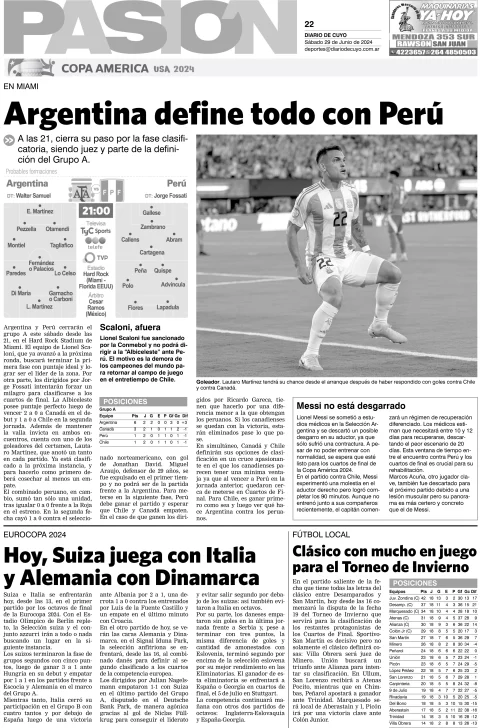 Diario de Cuyo | HOME | Edición impresa Tapa Pasión 29 de Junio de 2024 Por Redacción Diario de Cuyo 29/06/2024 · 4:00 Escuchar la noticia Escuchar la noticia Your browser doesn’t support HTML5 audio Ver los comentarios ›