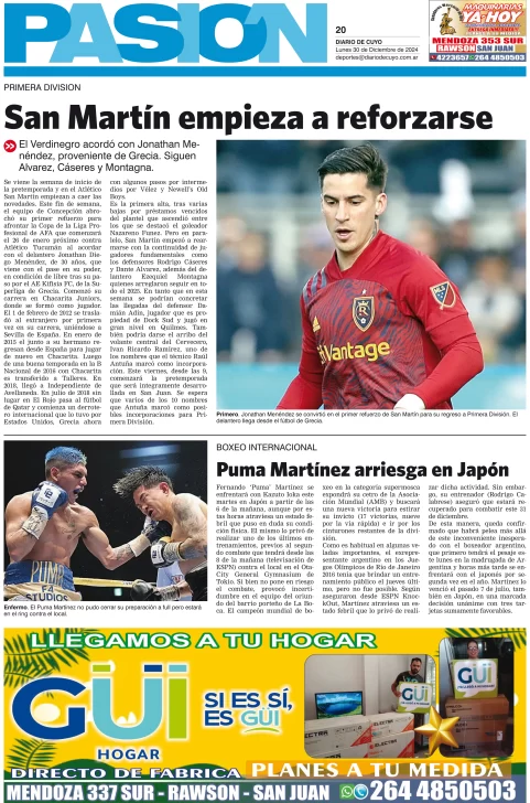 Diario de Cuyo | HOME | Edición impresa Tapa Pasión 30 de Diciembre de 2024 Por Redacción Diario de Cuyo 30/12/2024 · 4:00 Escuchar la noticia Escuchar la noticia Your browser doesn’t support HTML5 audio Ver los comentarios ›
