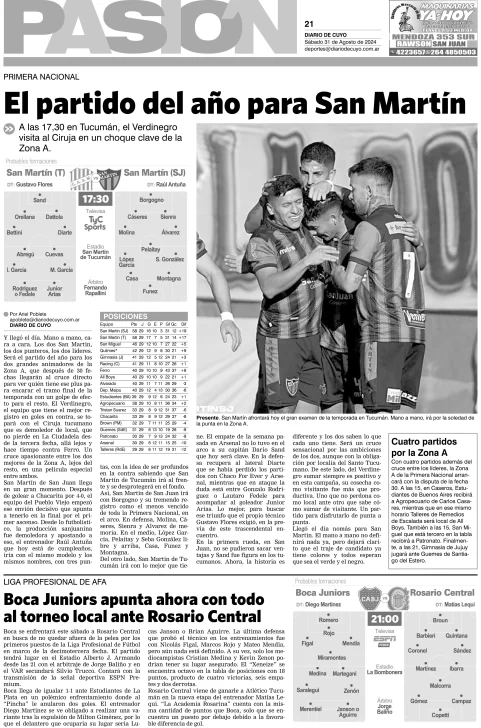 Diario de Cuyo | HOME | Edición impresa Tapa Pasión 31 de Agosto de 2024 Por Redacción Diario de Cuyo 31/08/2024 · 4:00 Escuchar la noticia Escuchar la noticia Your browser doesn’t support HTML5 audio Ver los comentarios ›