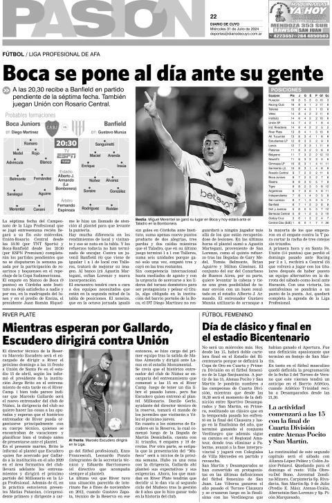 Diario de Cuyo | HOME | Edición impresa Tapa Pasión 31 de Julio del 2024 Por Redacción Diario de Cuyo 31/07/2024 · 4:00 Escuchar la noticia Escuchar la noticia Your browser doesn’t support HTML5 audio Ver los comentarios ›