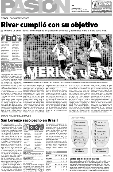 Diario de Cuyo | HOME | Edición impresa Tapa Pasión 31 de Mayo del 2024 Por Redacción Diario de Cuyo 31/05/2024 · 4:00 Escuchar la noticia Escuchar la noticia Your browser doesn’t support HTML5 audio Ver los comentarios ›