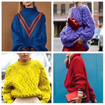 > Sweater vibrantes . La explosión de color es una estética de prendas de punto que recoge las tendencias de color más impactantes de la temporada, comenzando con el rosa , el púrpura y el bígaro de Barbiecore, también este aspecto de caleidoscopio incluye bloqueo de color gráfico en combinaciones inesperadas. Esta temporada, atrevidas combinaciones de looks y colores vivos irrumpen en el armario en combinación con angora, flecos, cuadros escoceses y rombos. Lo único que debe tener en cuenta es que los suéteres modernos y brillantes son bastante difíciles de combinar con cualquier cosa, por lo que al elegir un modelo específico, piense de inmediato cómo lo adapta a su estilo.