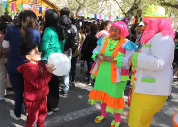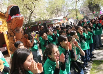 Primero fueron los niños lo que rodearon al dinosaurio inflable que avanzó hacia el epicentro de los festejos. Luego lo hicieron las madres que, sin temor alguno, dejaron a sus bebés en manos del Tiranosaurio Rex para tomarles unas fotos juntos. Fueron tantos los que quisieron fotografiarlo que su llegada a destino fue demorosa. A tal punto que el animador de la jornada tuvo que pedirle a grandes y chicos que lo dejaran avanzar para poder continuar con las actividades.