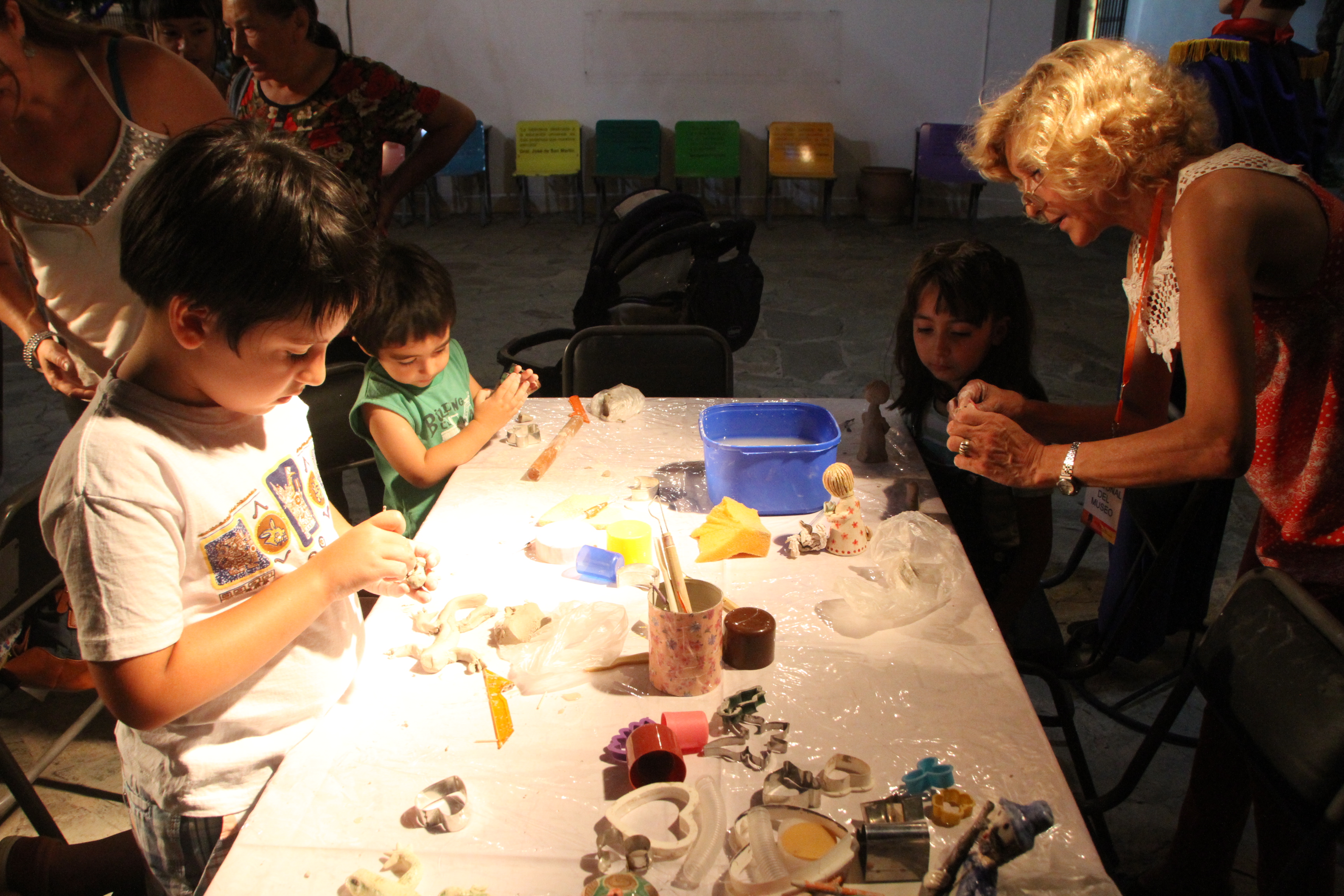 Aquí, Silvina Quiroga es la encargada de explicar a los niños el arte del moldeado en arcilla buscando acercarse al Sarmiento niño. Así les cuentan a los chicos que según consta en Recuerdos de Provincia, "Sarmiento no usaba los juguetes tradicionales de la época, como el trompo o la pelota, su entretención eran hacer soldaditos y santos de barro", comentó la profe. Entonces durante unos 45 minutos los chicos, solos o con sus padres, se entregan al trabajo plástico haciendo figuras con la arcilla, en trabajo libre, con la guía de la tallerista que mostrará distintas técnicas. También les explicará de qué manera hacer herramientas caseras para usar en este trabajo, y así descubrir que "no hace falta una gran inversión" en casa para trabajar con este noble material.