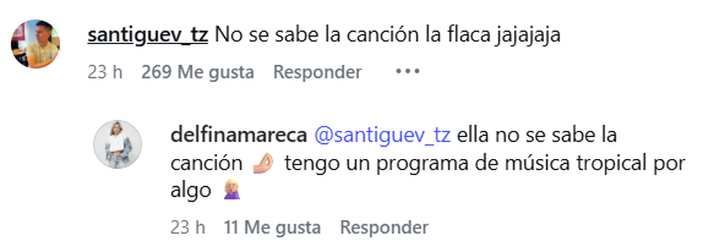 Lejos de esquivar la situación, la propia Delfina Mareca respondió a uno de los comentarios negativos.