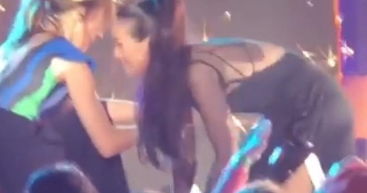 Su cara contra el rostro se escuchó tanto como los aplausos de la primera fila: con la ayuda de Vero Lozano, conductora del evento junto al youtuber Kevsho, Oreiro se reincorporó y no perdió la sonrisa.