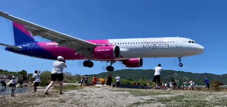 En un video publicado en el canal de YouTube Great Flyer, se observa un avión de la aerolínea Wizz Air realizar un aterrizaje con un ángulo de aproximación extremadamente bajo. Descendió tan cerca de los turistas, que algunos tuvieron que aferrarse a una barrera de tráfico para no ser derribados por el chorro de aire de las turbinas.