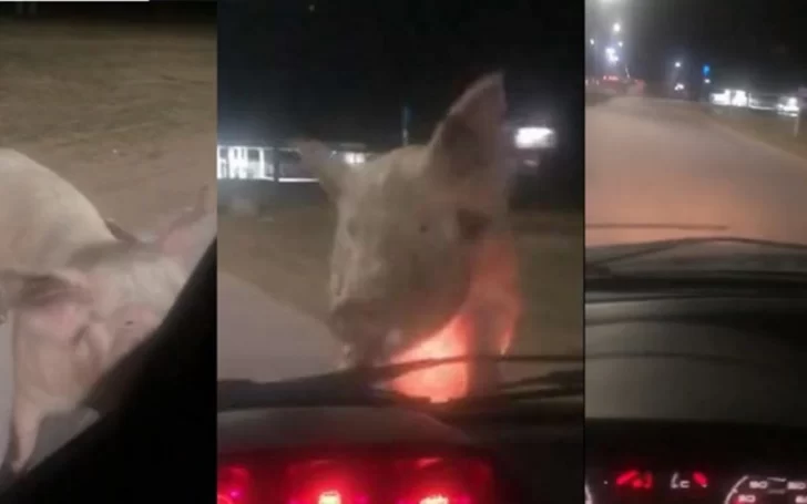 Un extraño episodio tuvo lugar anteanoche en la avenida Cabrera de Bahía Blanca: cuando una automovilista detuvo su auto en un semáforo, un cerdo que deambulaba en el lugar comenzó a seguirla y hasta se apoyó sobre el capó del vehículo.
