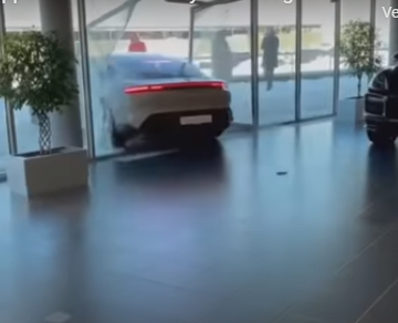 Una vez a bordo del Porsche, el joven aceleró a toda marcha y el lujoso auto impactó violentamente contra uno de los vidrios de la agencia. Como era de esperarse, el video se hizo viral aunque muchos argumentaron que se trataba de una broma.
