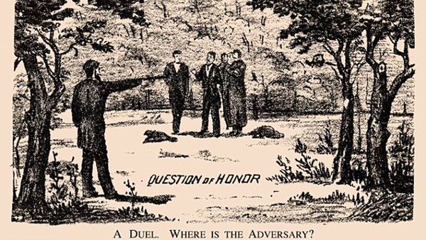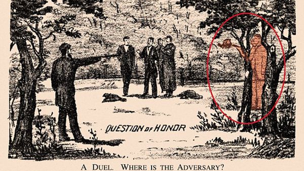 En la imagen, publicada en Playbuzz, se puede ver a un hombre preparándose para un duelo, mientras que un grupo de personas presentes lo mira, pero ¿dónde está su adversario? El oponente pronto tendrá que darse a conocer, pero por el momento permanece invisible.