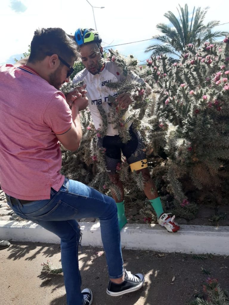 ¡Qué dolor! Un ciclista riojano cayó sobre una plantación de cactus y quedó lleno de espinas